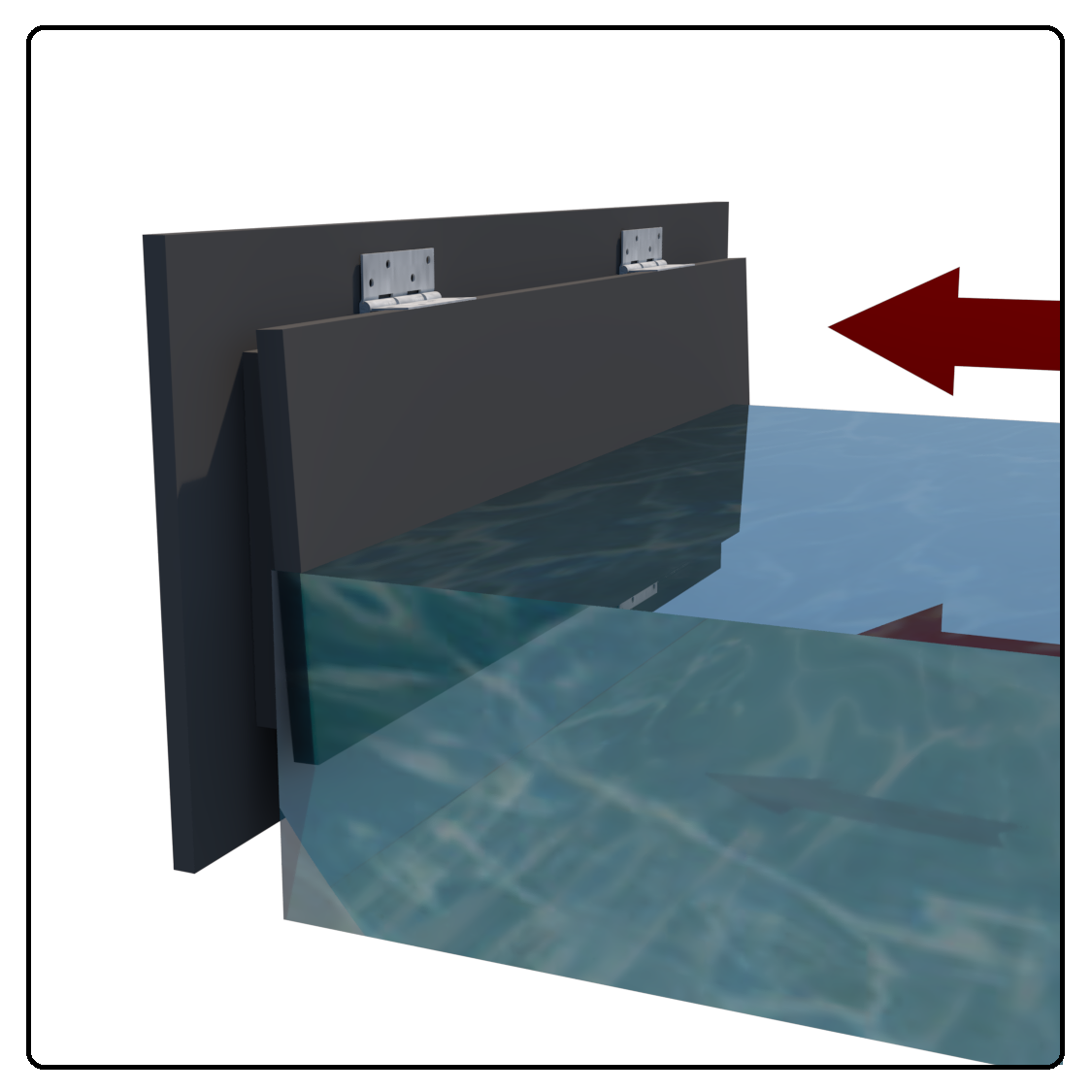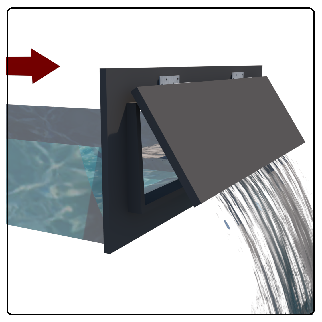 Phổ biến nhất khi cửa xả đã được đổ sẵn trong bê tông. Bơm keo silicon đảm bảo kín nước giữa tường và mặt bích.